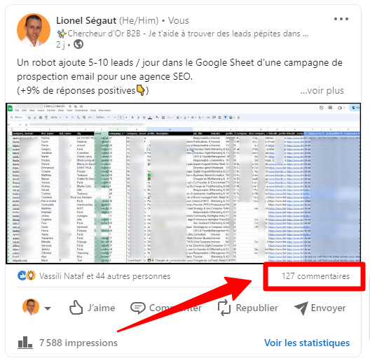 Je pensais pas générer autant d’engouement en parlant d’un de nos robots assistants qui créent les Google Sheet de prospection de plusieurs de nos clients !